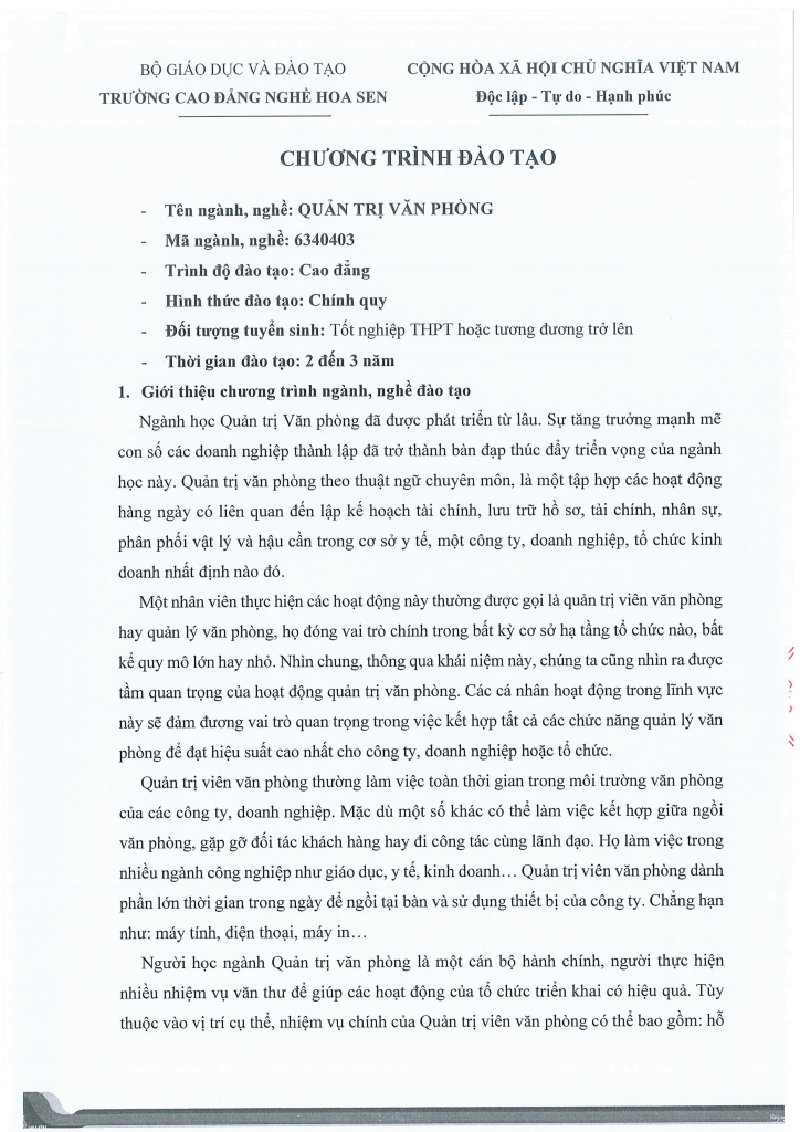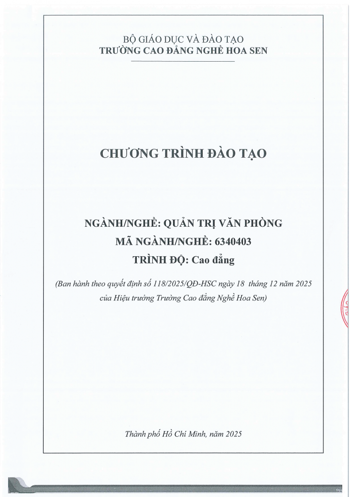 Trang chủ » Chương trình đào tạo Ngành Quản trị Văn phòng (Thư ký Y khoa) trình độ Cao đẳng Chính Quy
